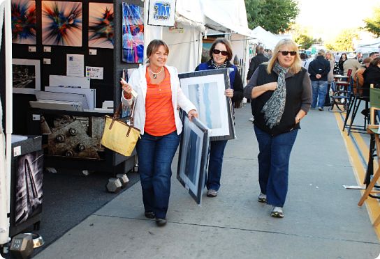 We had an assigned set up time of 5pm on Thursday. We drove by the check in point at 10:30am where we picked up our information packet but were told we had to abide by the schedule. We drove by our booth location and saw there was practically no one on the street. We ran a short errand and came back to ask if we could set up if we dollied in. Knock yourself out we were told. So, we found a parking spot on the street about a block away from our booth location and set up. We were done with the tent at about 2pm and decided to come back at our scheduled time to hang our work. During that whole time the street was pretty much empty except for some Sprint contractors setting up a temporary cell tower at the end of our row powered by two diesel generators. We were downwind, and the fumes were overpowering. When we came back at 5pm the street was jammed with people trying to unload to set up. Why more people were not scheduled earlier is a mystery.