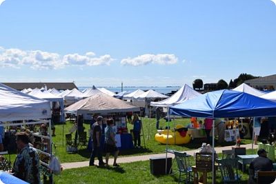 Check in was at 12:00 noon on Friday. Traffic to unload is well controlled and at most, you have to dolly about 1/2 block, but the grass in the park can be thick, and dollies with small wheels are difficult to move. During the show, artists park in lots a couple blocks away and take a free shuttle back to the park. There was plenty of space behind booths for storage. Take down was well managed. You were not allowed to bring your vehicle into the parking lots until you were ready to load up. It looked like parking on US40 was first come that got the spaces.